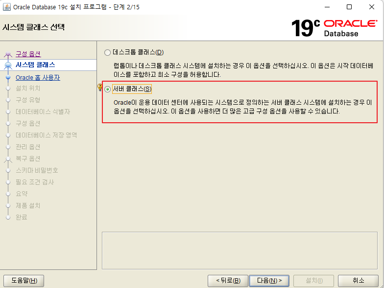 서버 클래스 : 데이터베이스를 혼자 사용할 경우에는 데스크톱 클래스로 다운로드를 해도 좋으나,