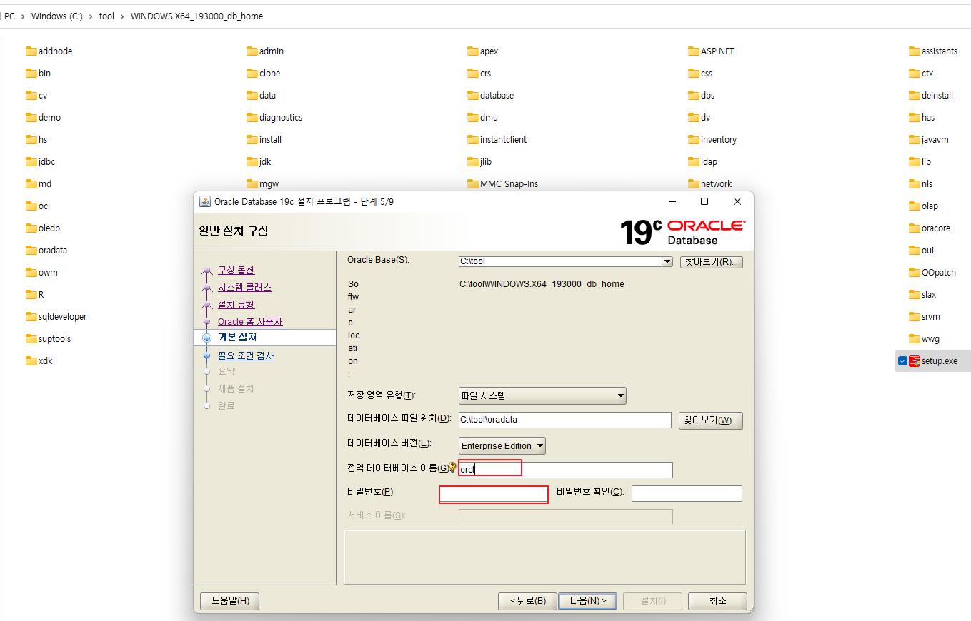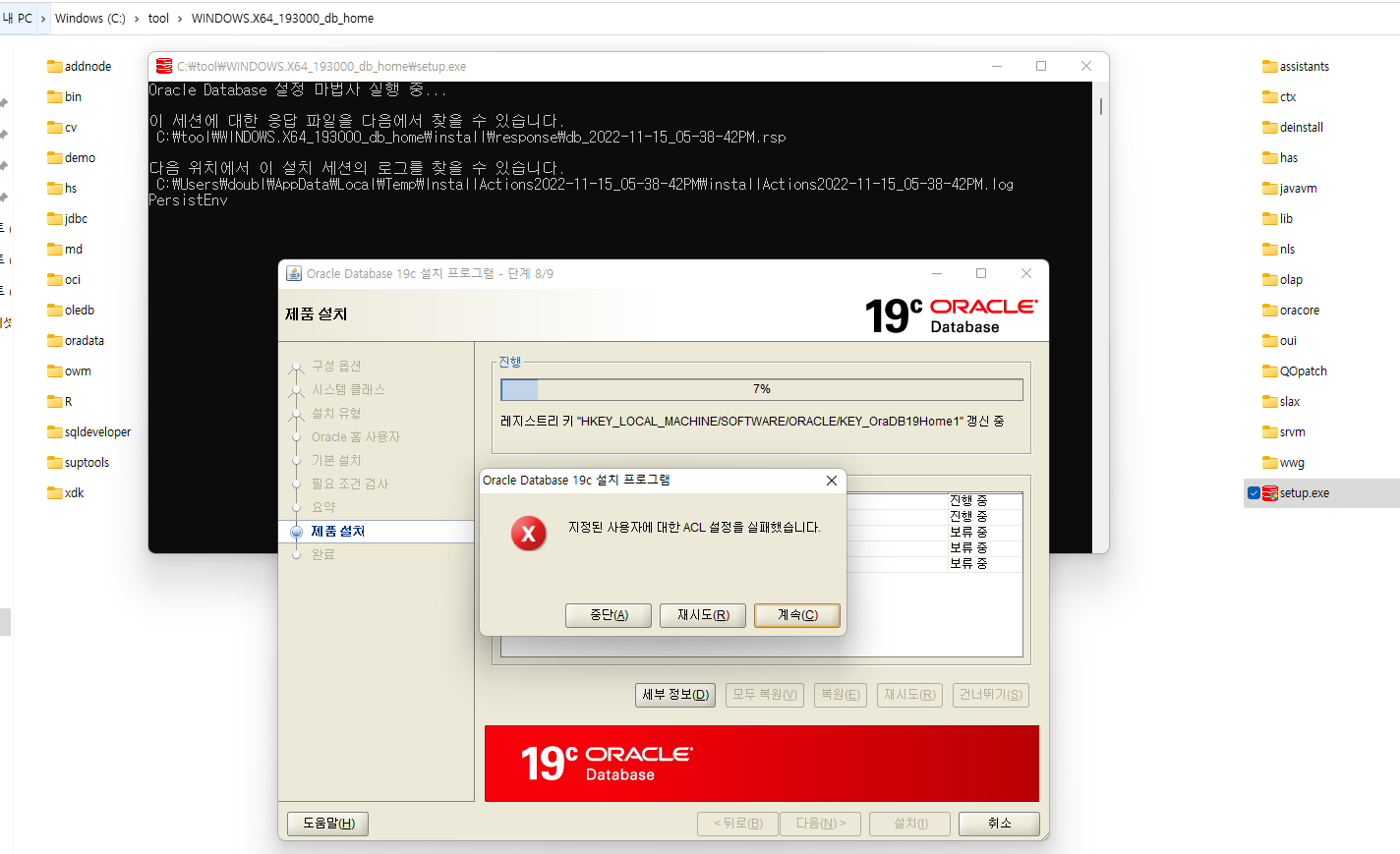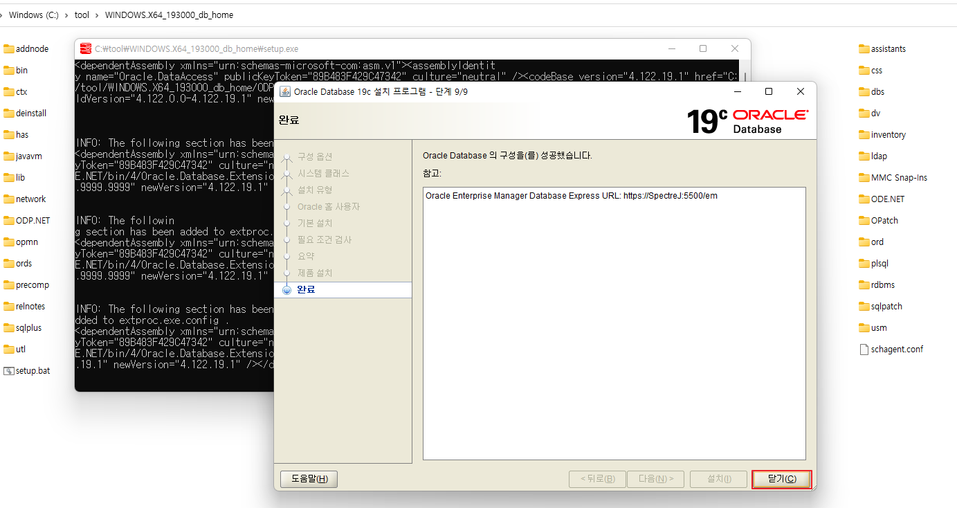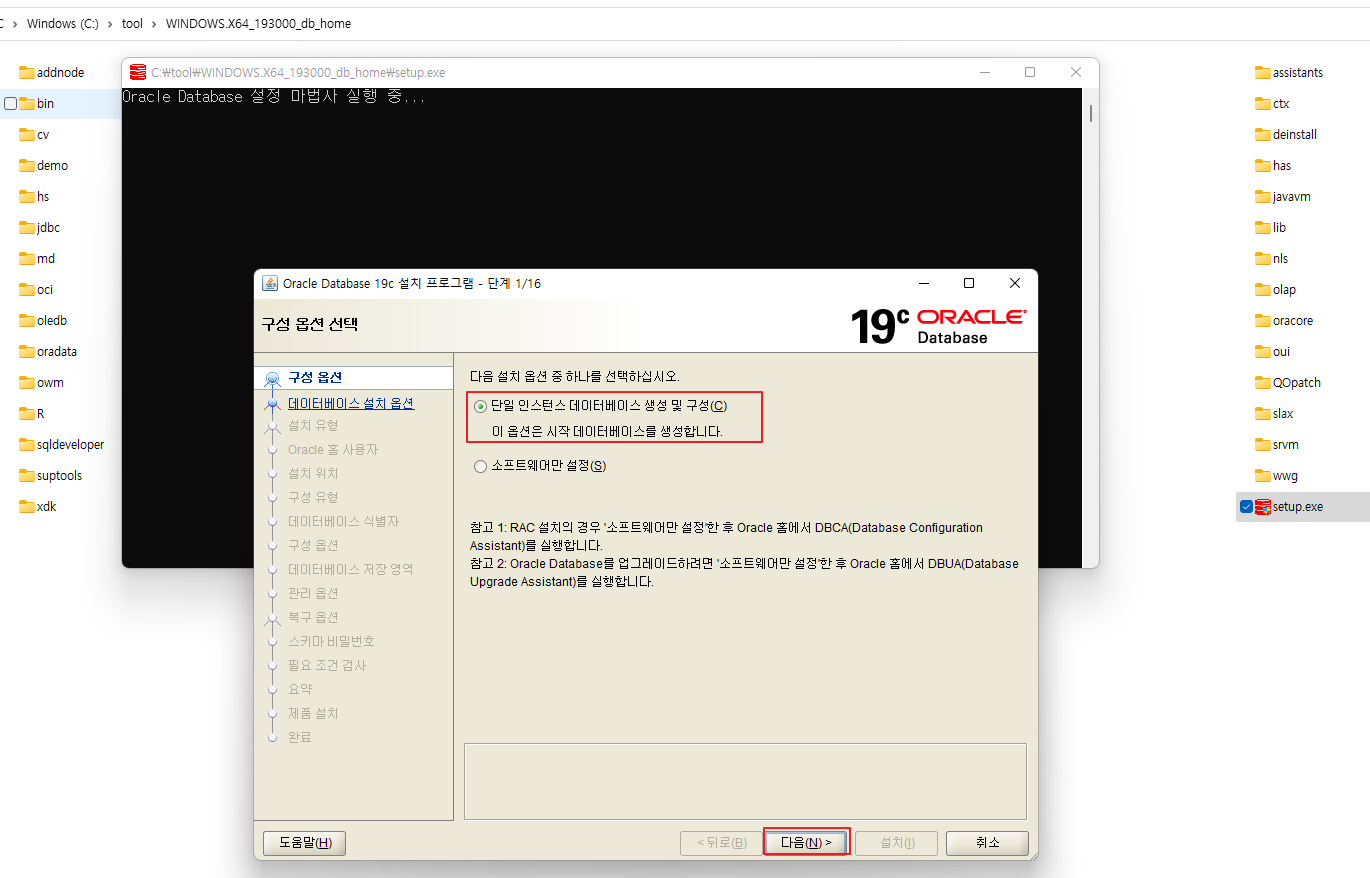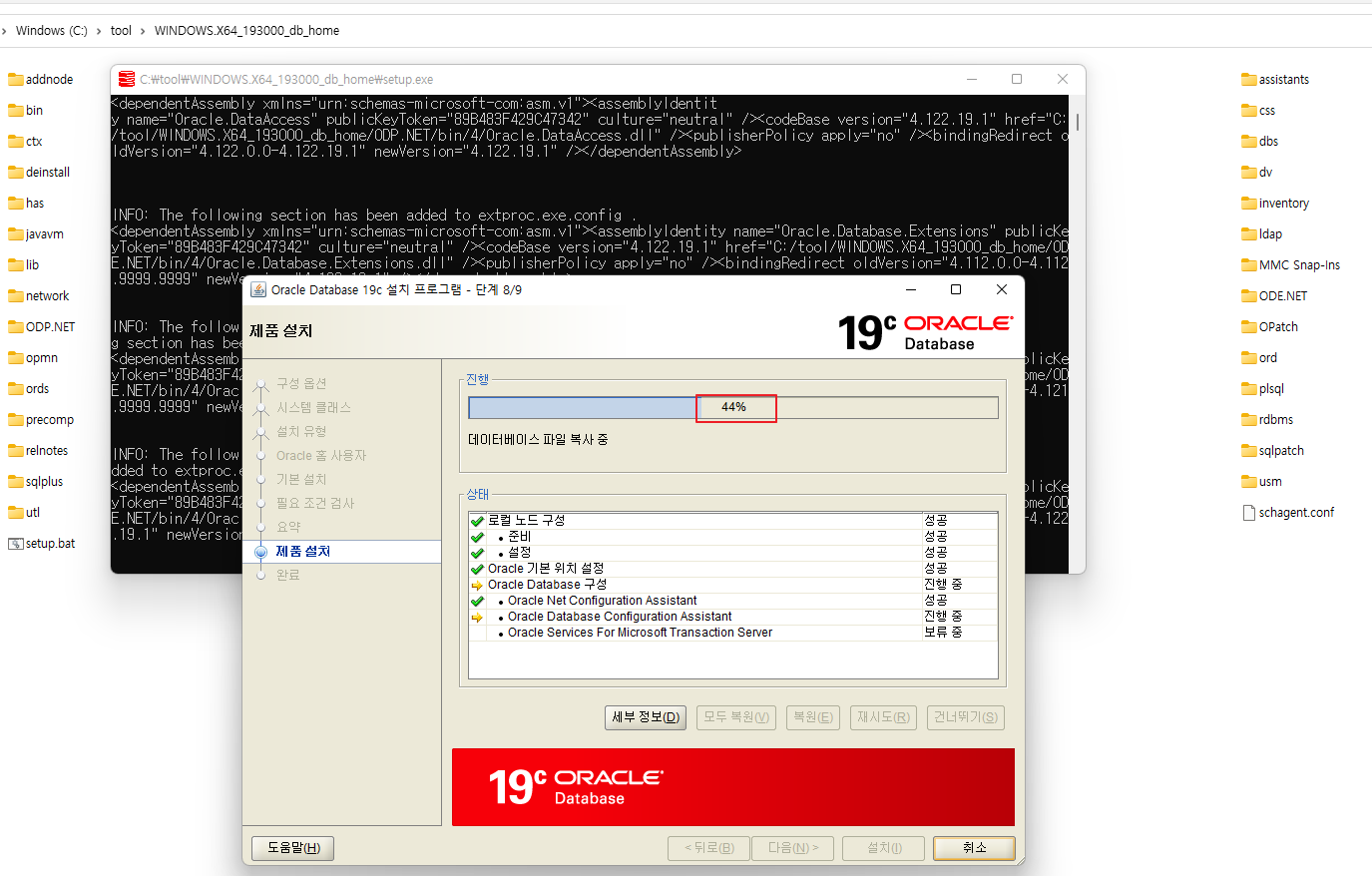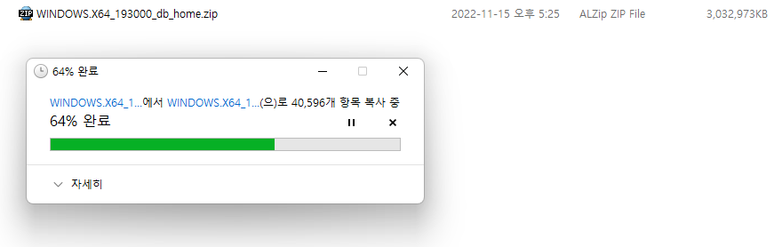 오라클 19c window 환경의 파일 압축풀기 과정의 소요시간이 꽤 걸림