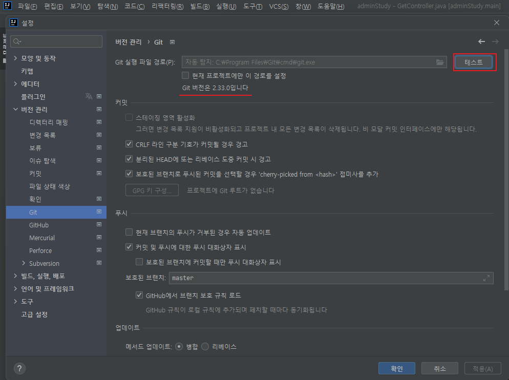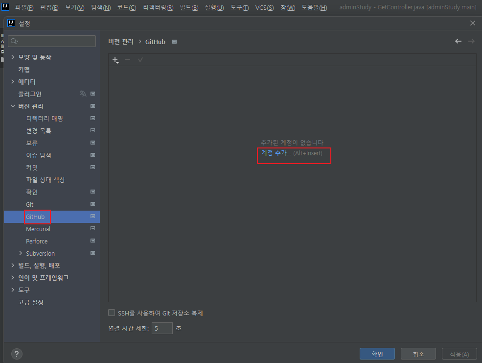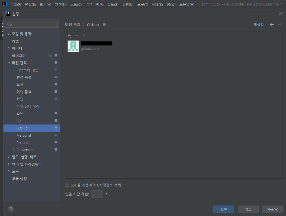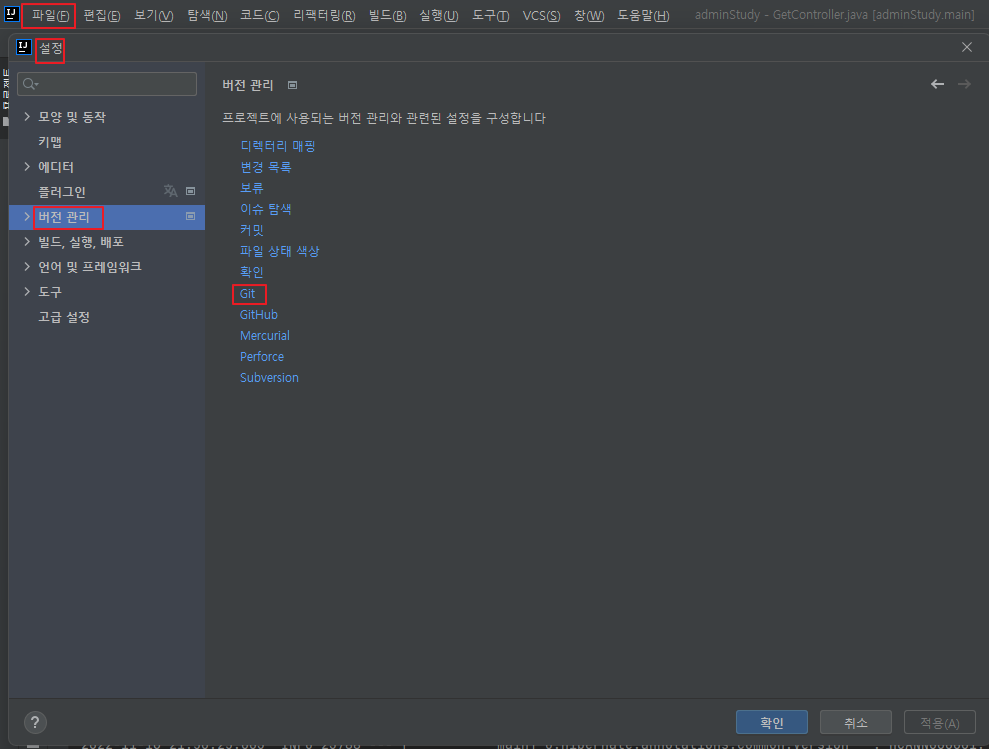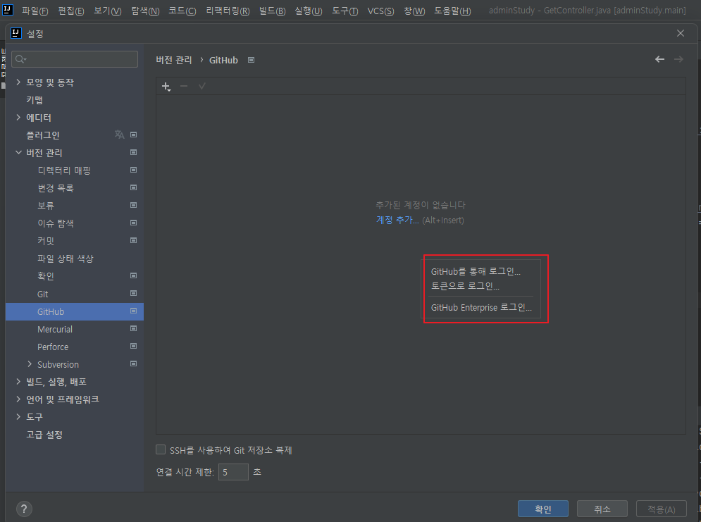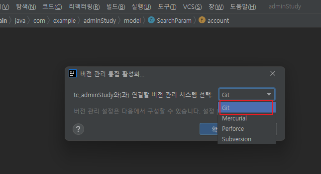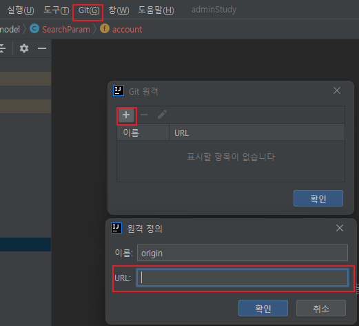 두번째로, intellij에 깃의 레파지토리를 연결한다.
