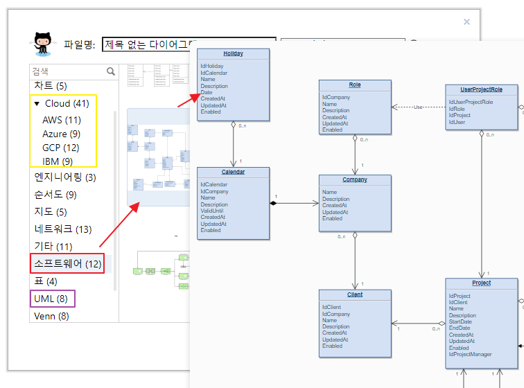 클라우드에 GCP (Google Cloud Platform ) , / softerware에 아래 화면은 ERD 에서 유용할듯